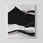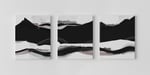 An abstraction of a traditional landscape, inspired by the beautiful natural surroundings of the Pacific Northwest and Cascade mountains. The strong, black forms contrast with fluid lines representing abundant bodies of water.