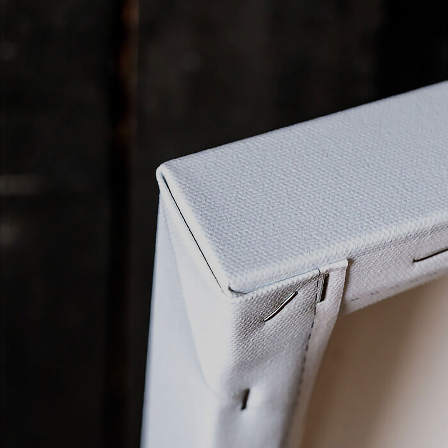 Presented on an acid-free, lightly textured poly-cotton base canvas, the artwork is attached to solid wood stretcher bars and ready for immediate display. Available in three sizes, hanger included.