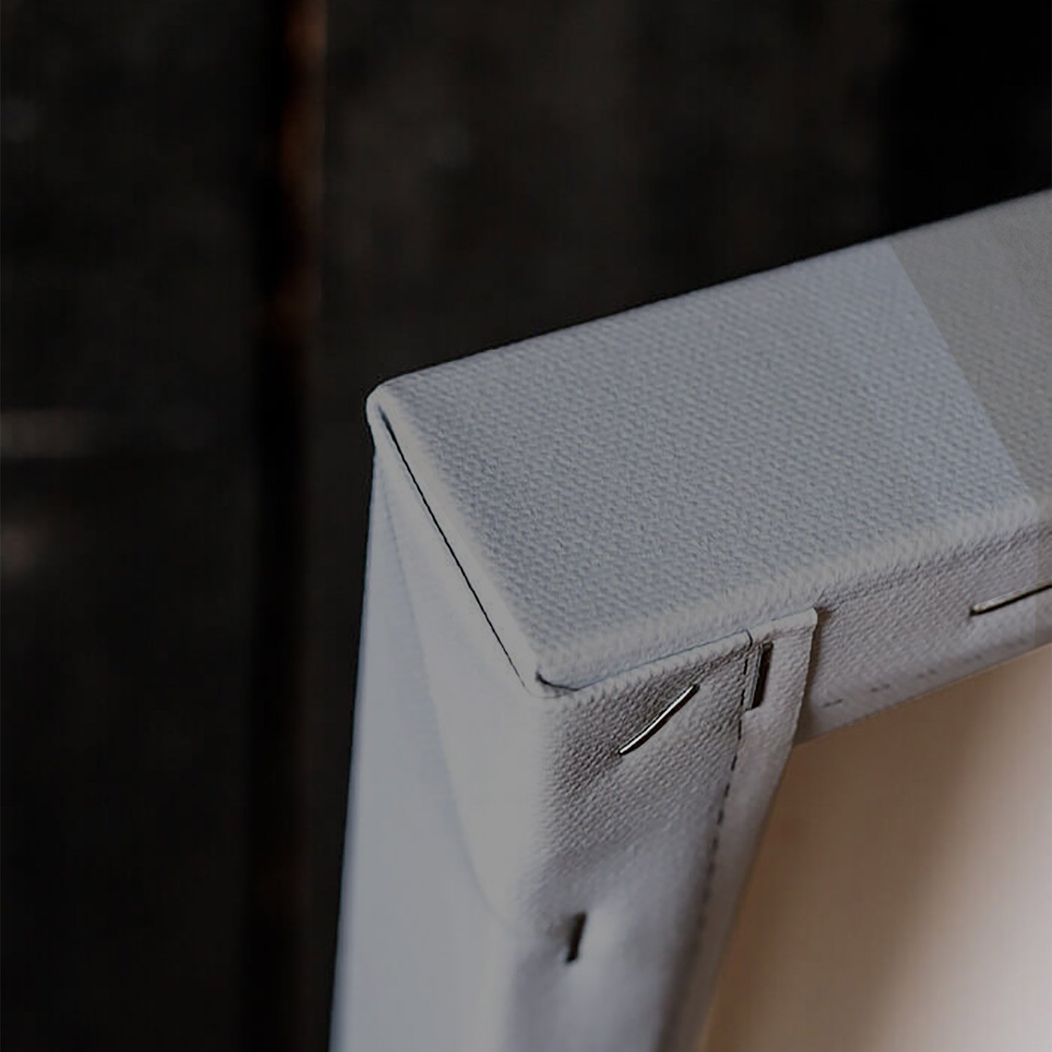 Presented on an acid-free, lightly textured poly-cotton base canvas, the artwork is attached to solid wood stretcher bars and ready for immediate display. Available in multiple sizes, hanger included.