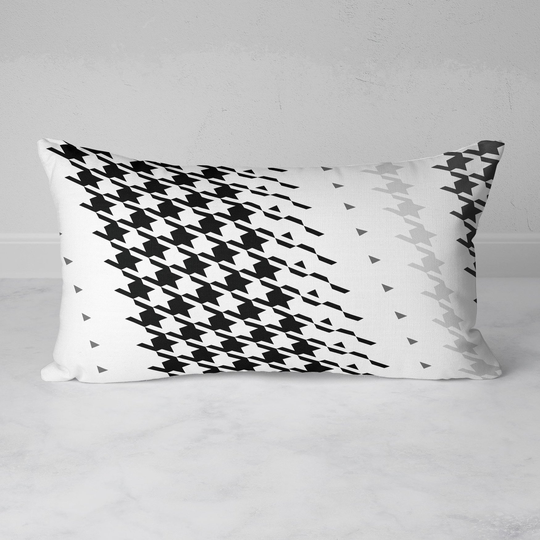 A classic houndstooth pattern, reinterpreted and deconstructed in crisp black and gray. The abstract, geometric design features a deconstructed houndstooth pattern, visible on both sides of the removable pillow case.