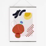 Abstract shapes and linear forms intersect with a bit of a retro vibe. This abstract, minimalist art print is sophisticated without being stodgy. Vibrant colors complete the picture. Part of the 'Shape & Hue' series (2 of 6).