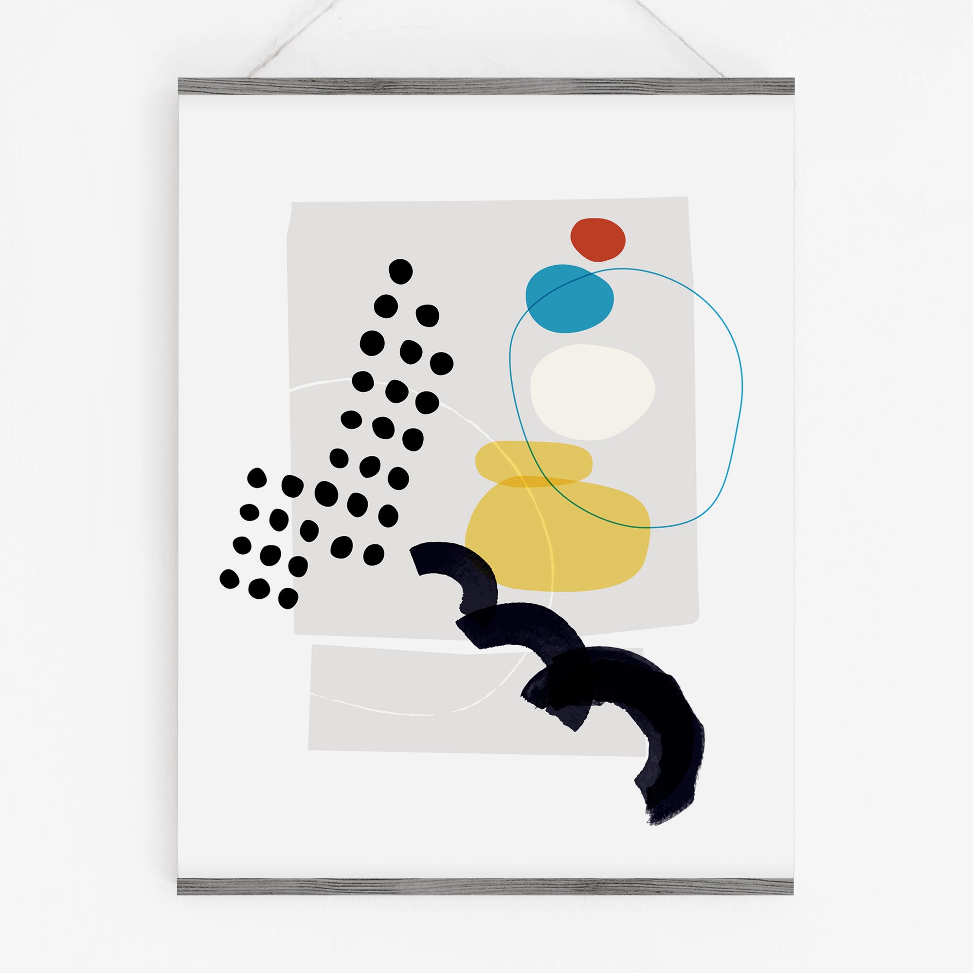 Featuring vibrant colors and layered shapes, this minimalist art print complements sophistication with a playful touch. Part of a series, ready for mixing and matching.